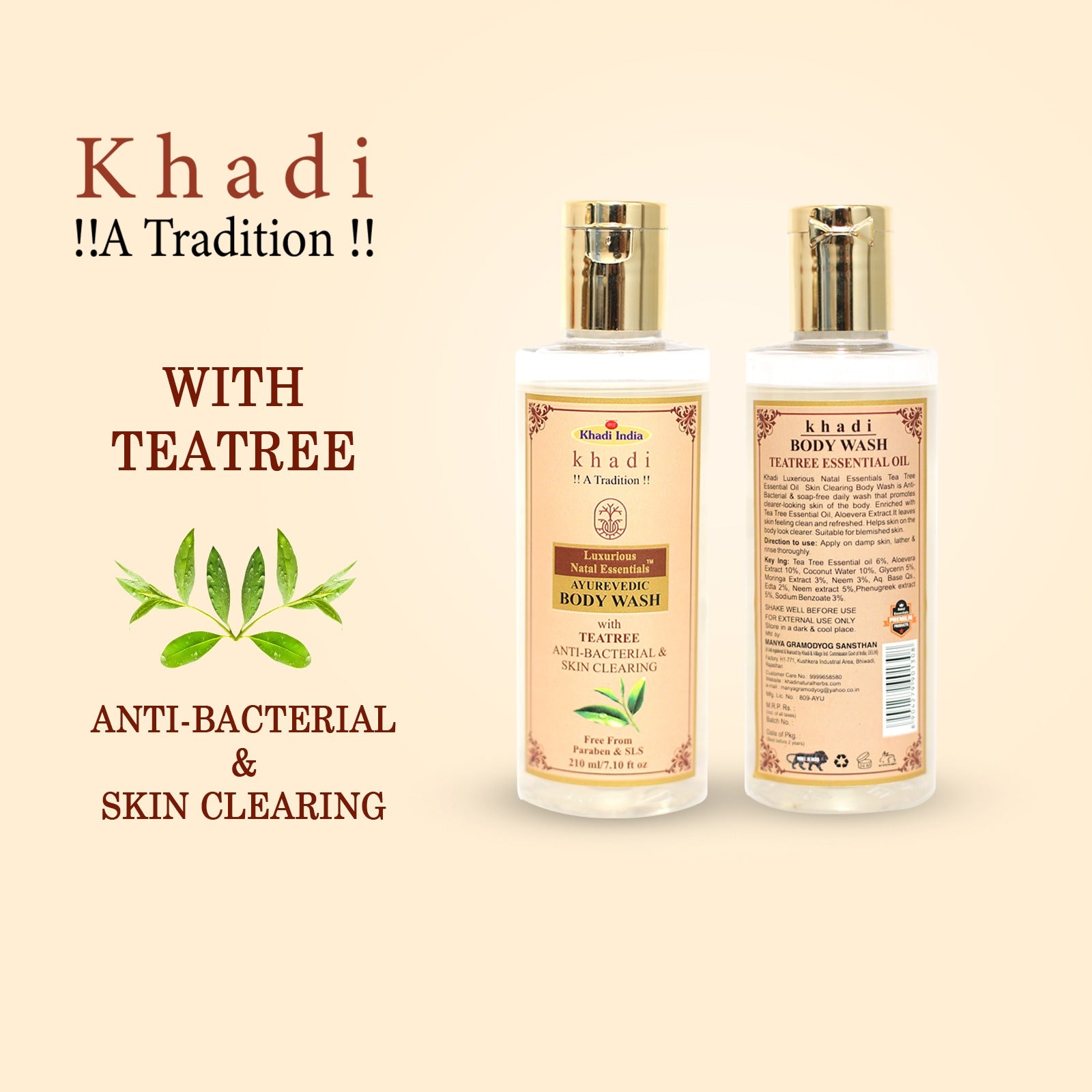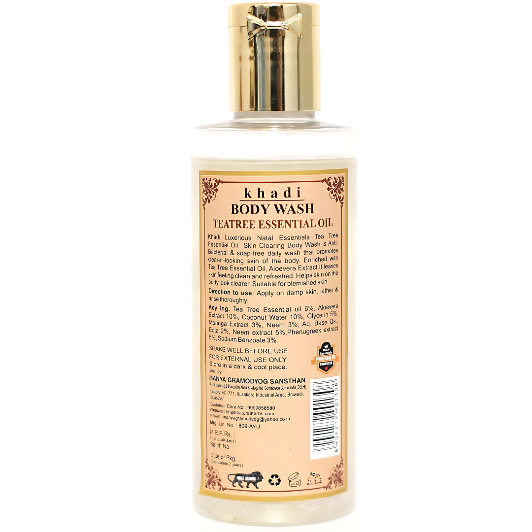 Luxurious Natal Essentials Ayurvedic Tea Tree Body Wash Aroma Skin Clearing and Antibacterial. soap-free daily wash that promotes clearer-looking skin of the body. Enriched with Tea Tree Essential Oil, Aloevera Extract.