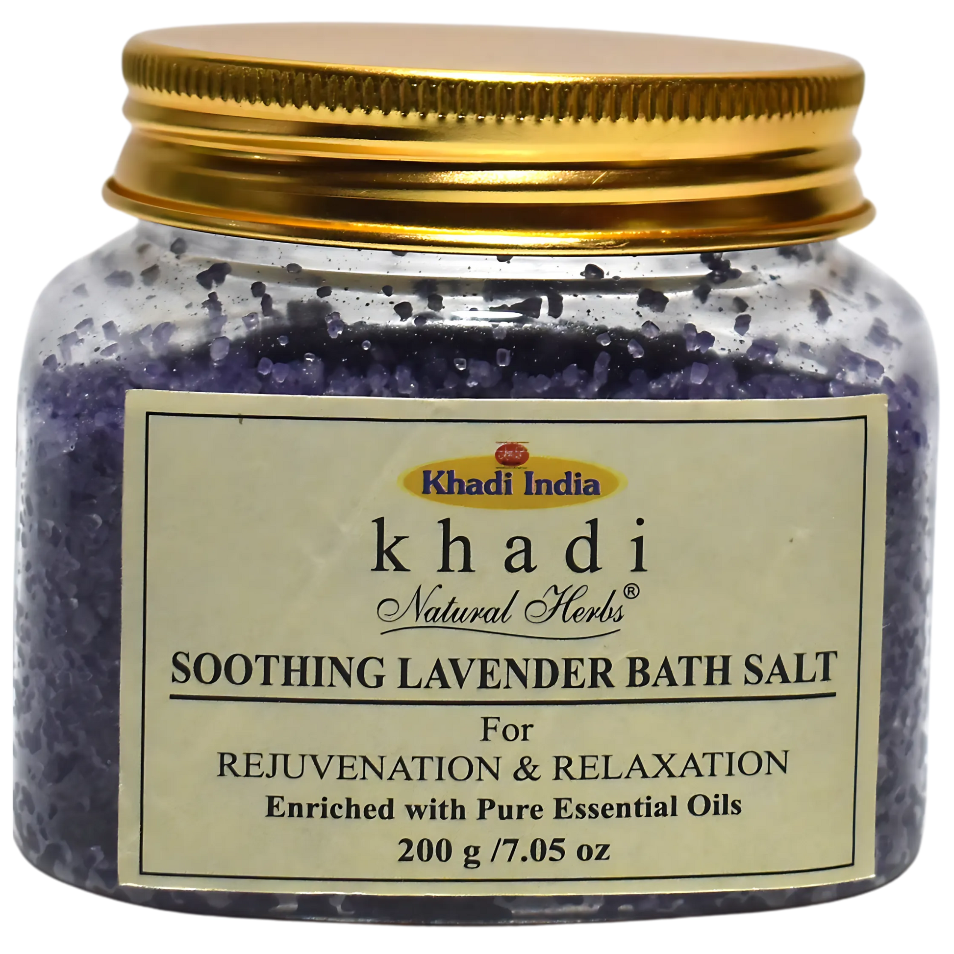 Khadi Natural Herbs Herbal Bath Salt Soothing Lavender draws out impurities from your body giving you a relaxing retreat and helps you feel the power of bathing with therapeutic properties for the skin. Enriched with Pure Lavender Essential Oil, Sea salt.