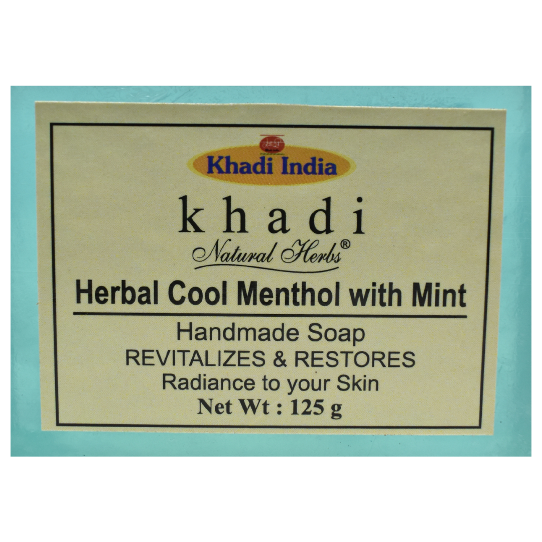 Khadi Natural Herbs Menthol with Mint soap with a cooling and refreshing sensation of fresh menthol fragrance, this bar of Menthol soap helps your skin stay moisturized while also keeping you and your family protected against illnesses. Handmade Soap, Glycerin & Mint Essential Oil with Menthol Crystals.